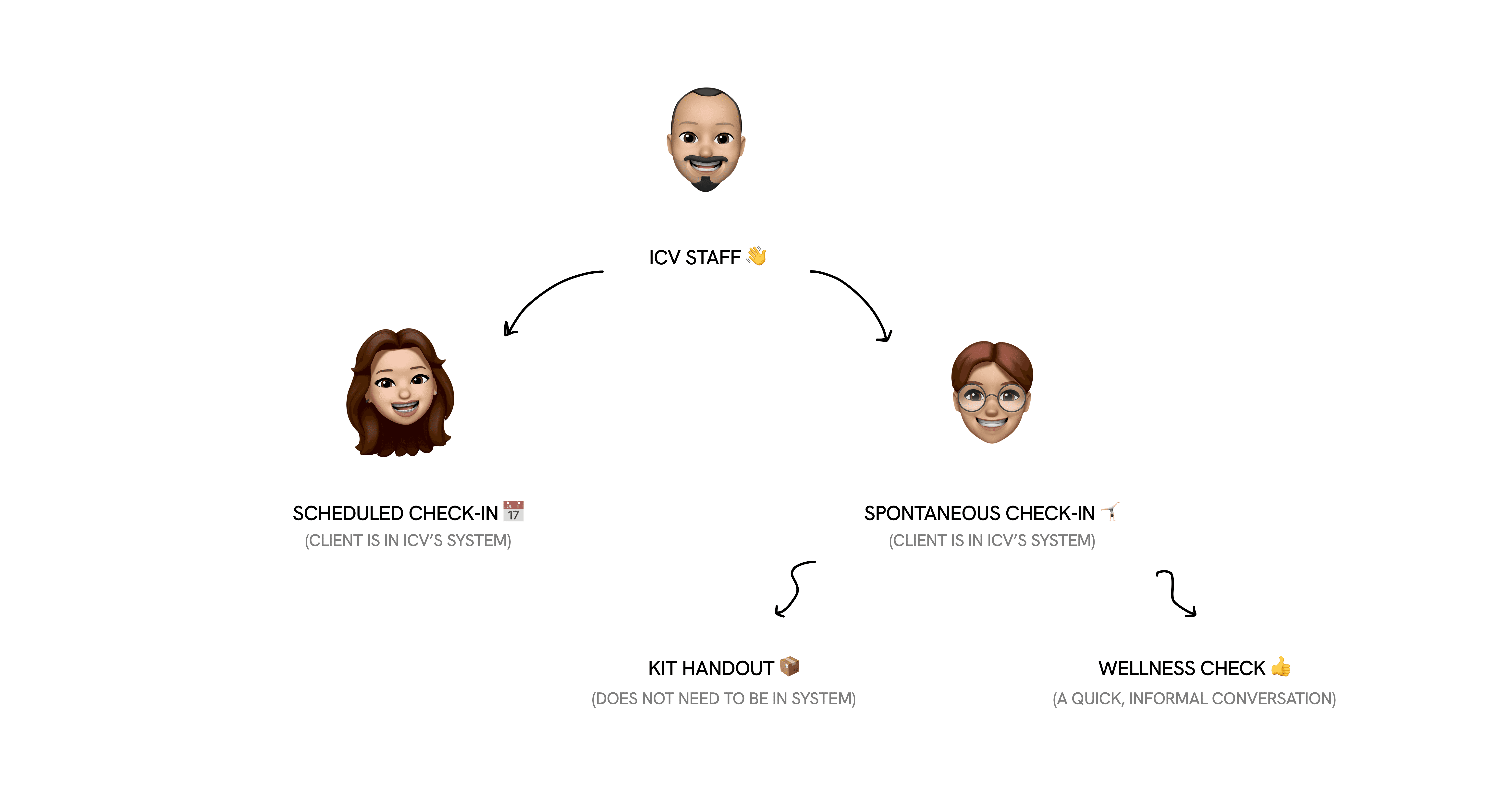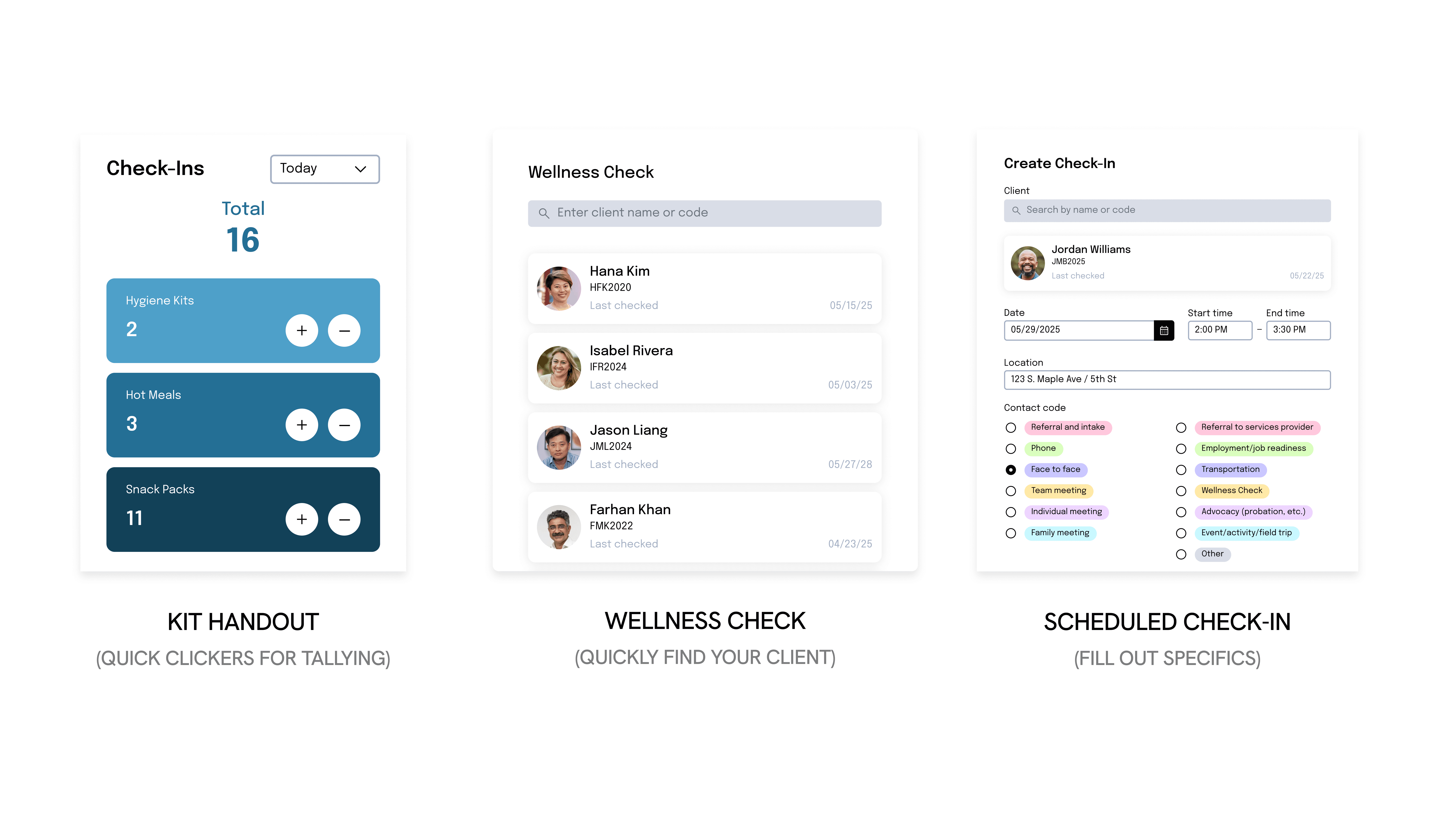 To accommodate for this unpredictability, we had to make sure the flow for tracking a check-in can be as quick and efficient as possible, while also serving its purpose.